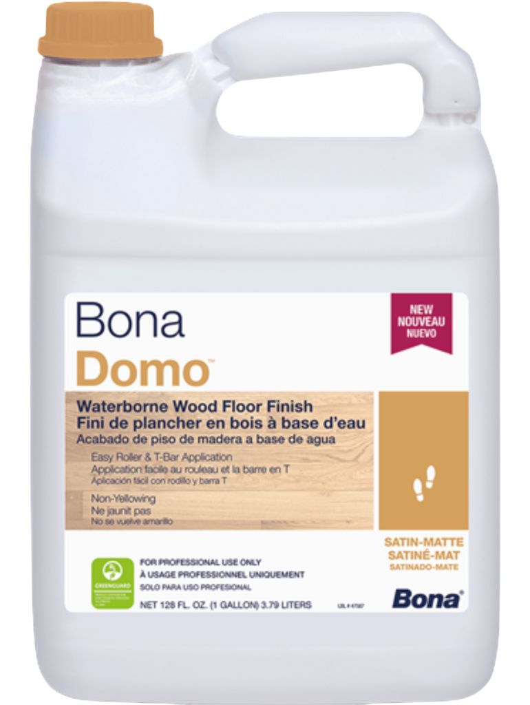 Bona Domo® is an easy-to-use, quick-drying, water based floor finish for residential, light traffic environments. This hardwood floor finish is a protective one-component formula with low VOCs.